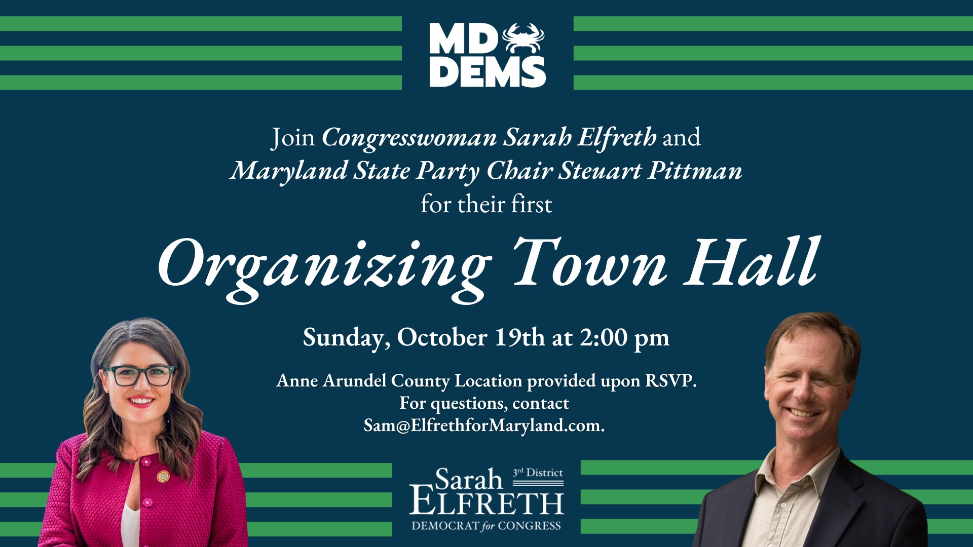 Join the Chairman of the Maryland Democratic Party and Maryland District 3 U. S. Congresswoman for am Organiating Town Hall!
